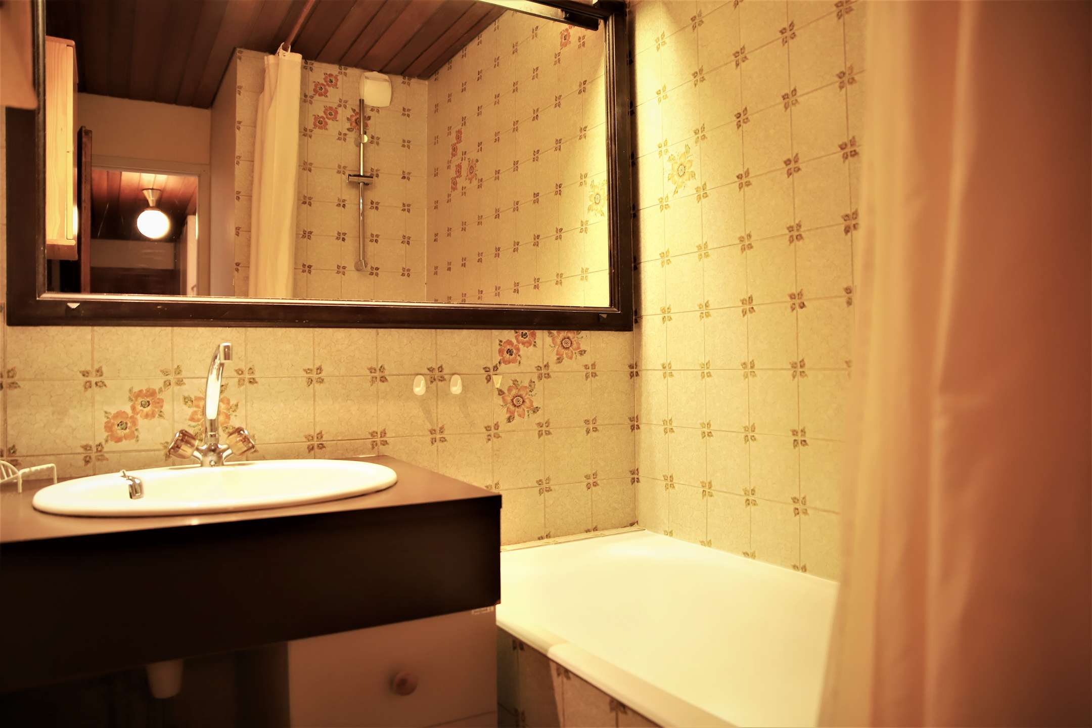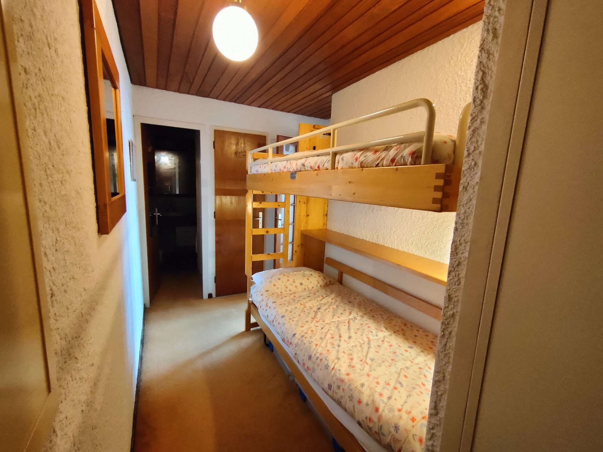 Il est composé d'un séjour avec un canapé convertible gigogne (2 personnes), d'un coin cuisine équipé, d'un coin nuit ouvert dans le couloir de l'entrée avec un lit peigne (2 personnes) superposé d'un lit simple, d'une salle de bain baignoire et des WC séparés. Appartement classé meublé de tourisme 2 étoiles