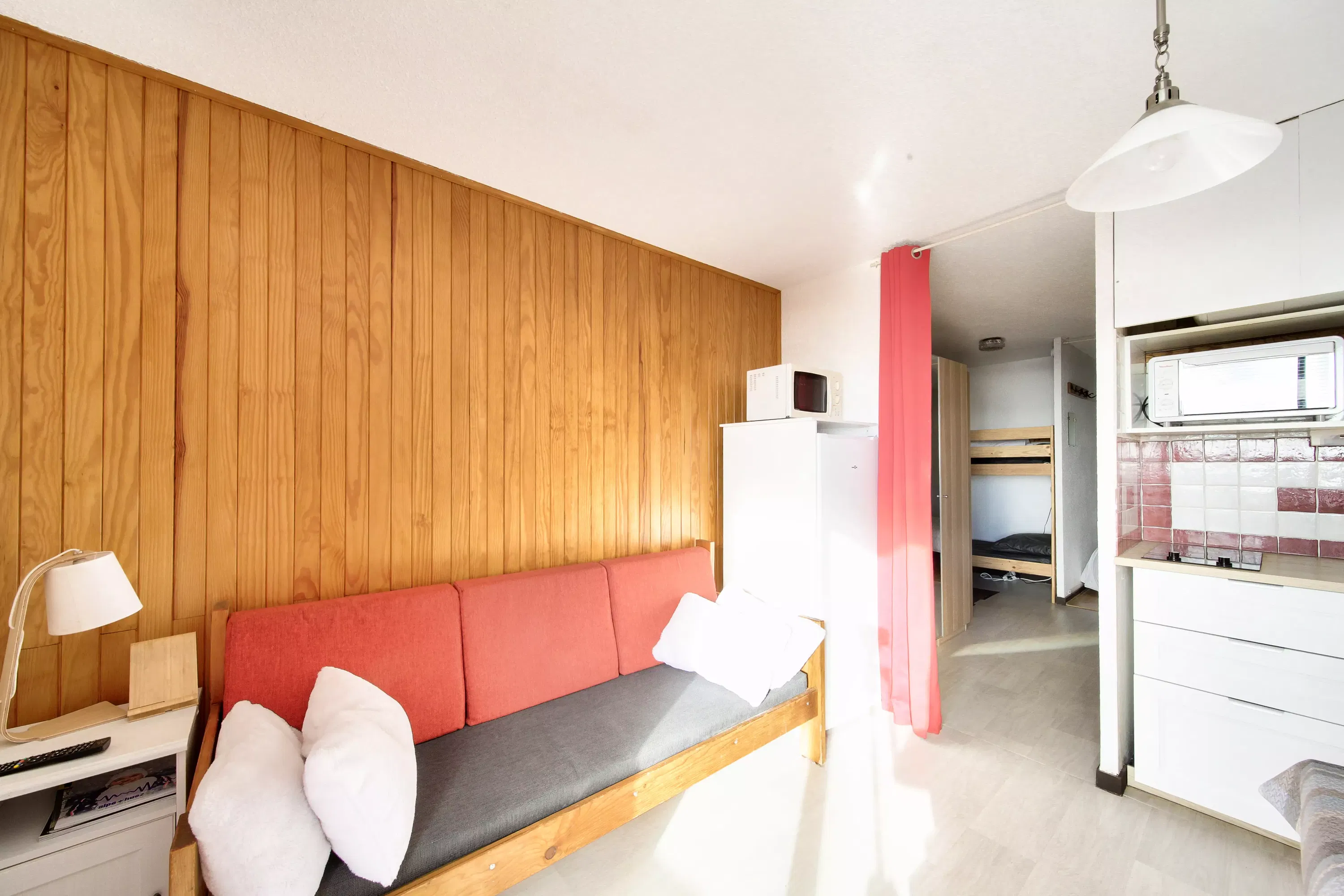 Les atouts de votre location : Ce studio de 31?m² offre un agencement fonctionnel et un balcon exposé plein Sud avec une vue dégagée sur la montagne. Vous apprécierez la proximité immédiate des télécabines et des commerces, ainsi que la présence d’un parking et d’un casier à ski, idéal pour des vacances pratiques à la montagne.